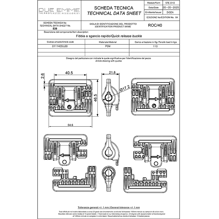 イタリア 2M クイックリリースバックル[ROC40]です。