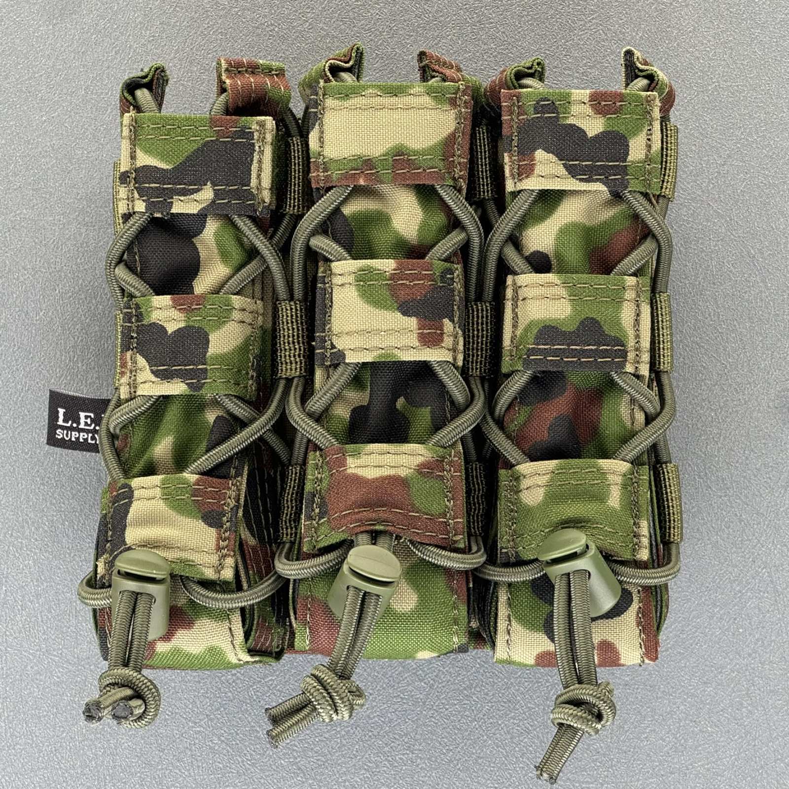 固定用バンジーコードのテンションを変えることにより、ロングタイプのフラッシュライト、ツール、サプレッサー等の携帯にも便利です。