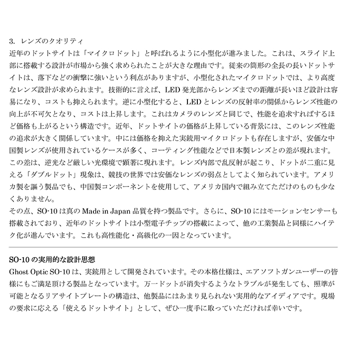 Ghost Optic SO-10は、CZ Customと日本企業が共同開発した高性能マイクロドットサイトです。