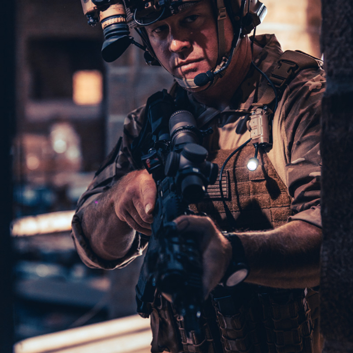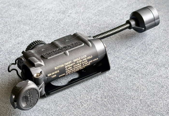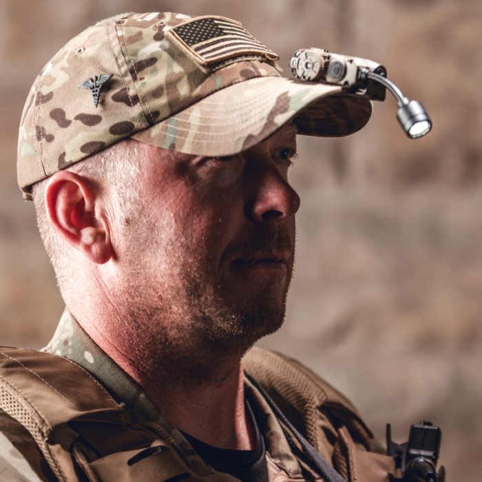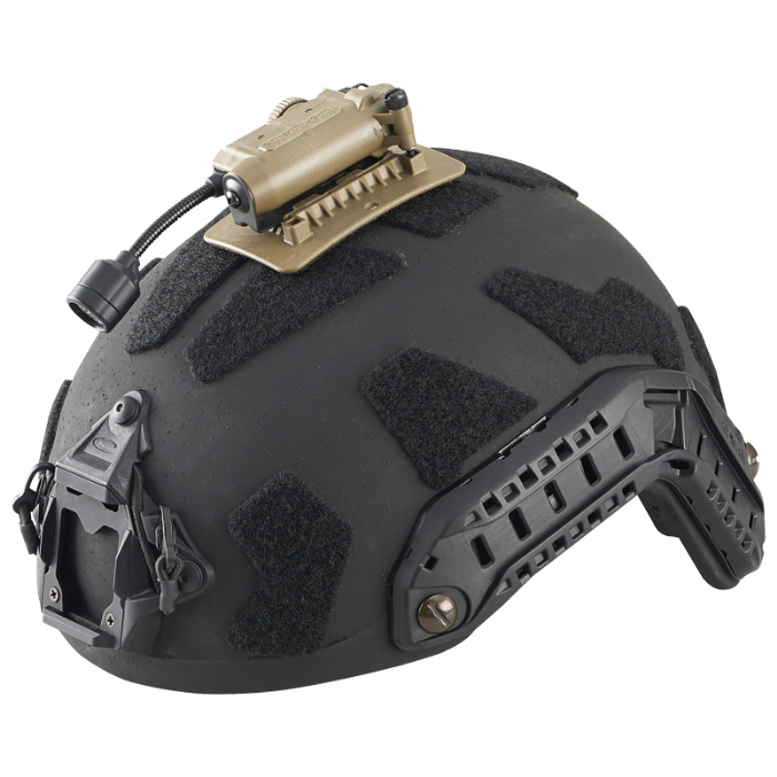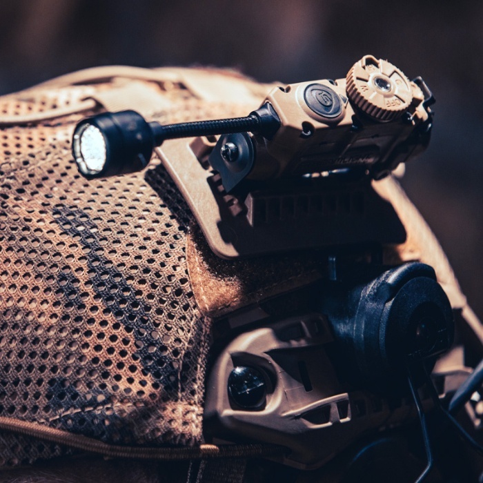 ヘルメットライトとして、MOLLEシステムへのアタッチ等ハンズフリーフラッシュライトとしても使用できるだけでなく赤外線(IR)/IFFビーコンも搭載しています。